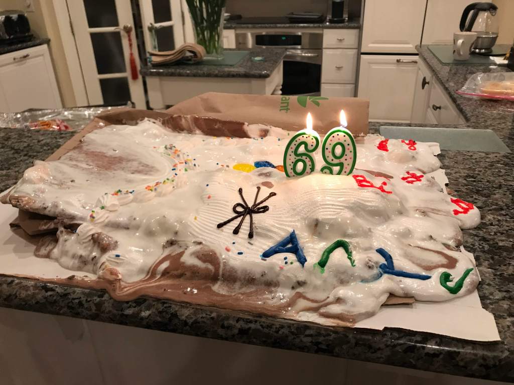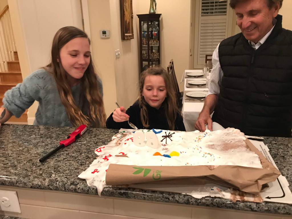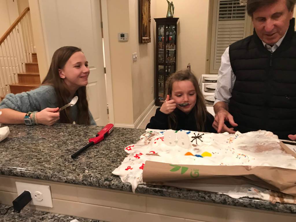 The first memory I wanted to share and probably one of my favorite memories with Grandy was on my Anyuka’s, that’s what we call my grandmother, on her birthday a few years ago. Went down to the basement to decorate her annual ice cream cake. When we got to the basement me and Chloe watched with wide eyes as Grandy pulled out the ice cream cake that he had lovingly stored in the fridge, not the freezer. As we wrote on the cake with icing tubes, our red letters started to slide off the cake onto the table. We continued to carry the melting cake up the steps, leaving drips behind. He never once mentioned anything about the melted cake, until we got all the way up the stairs. He just wanted Anyuka to have a good birthday. Even though in the process, we lost a cake and a pair of slippers, we laughed so much and even tried to eat the cake off the table.