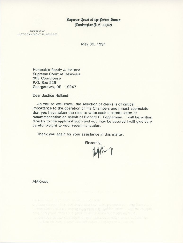 As you so well know, the selection of clerks is of critical importance to the operation of the Chambers and I most appreciate that you have taken the time to write such a careful letter of recommendation on behalf of Richard C. Pepperman. I will be writing directly to the applicant soon and you may be assured I will give very careful weight to your recommendation.