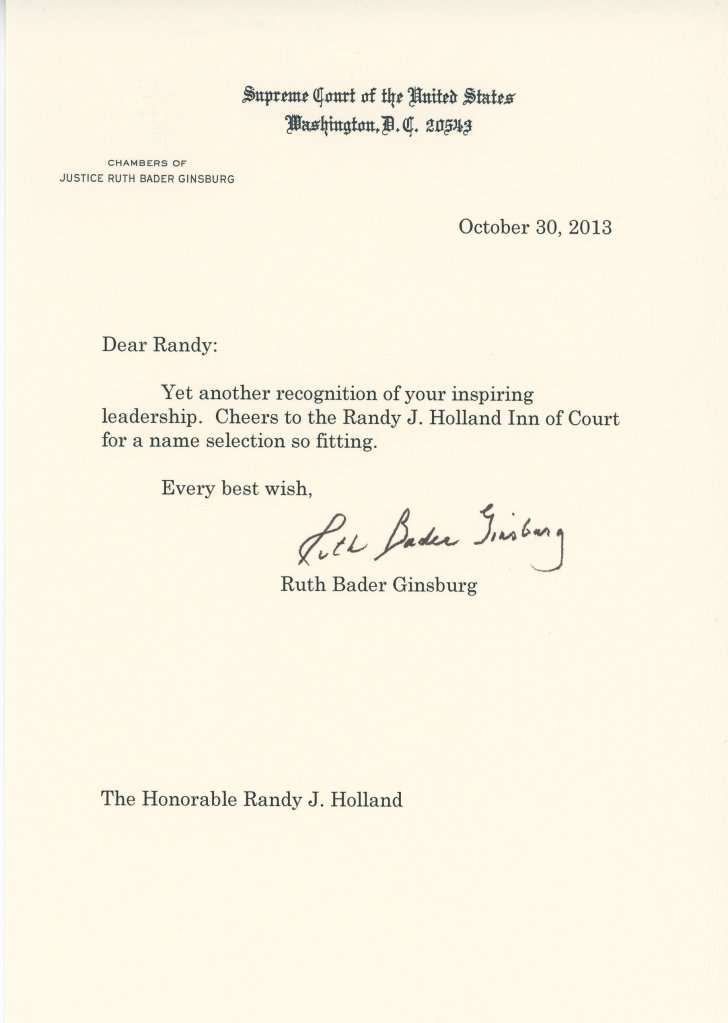 Yet another recognition of your inspiring leadership. Cheers to the Randy J. Holland Inn of Court for a name selection so fitting.