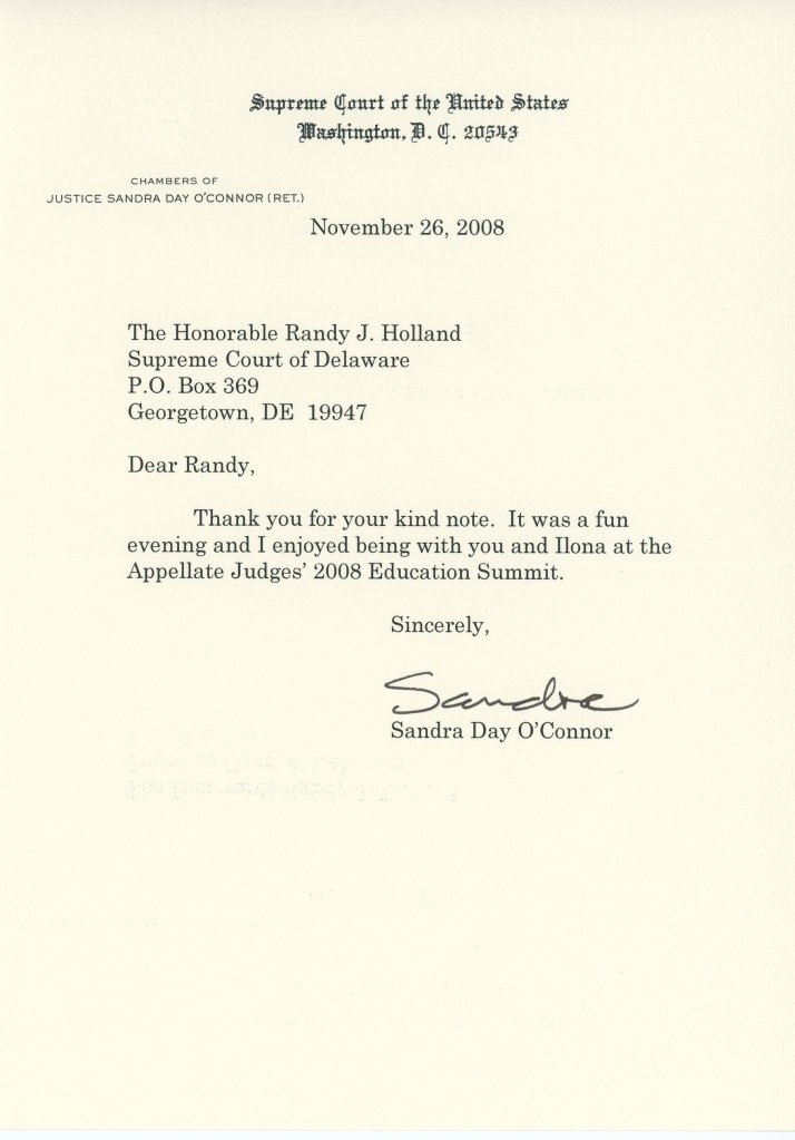 Thank you for your kind note. It was a fun evening and I enjoyed being with you and Ilona at the Appellate Judges’ 2008 Education Summit.