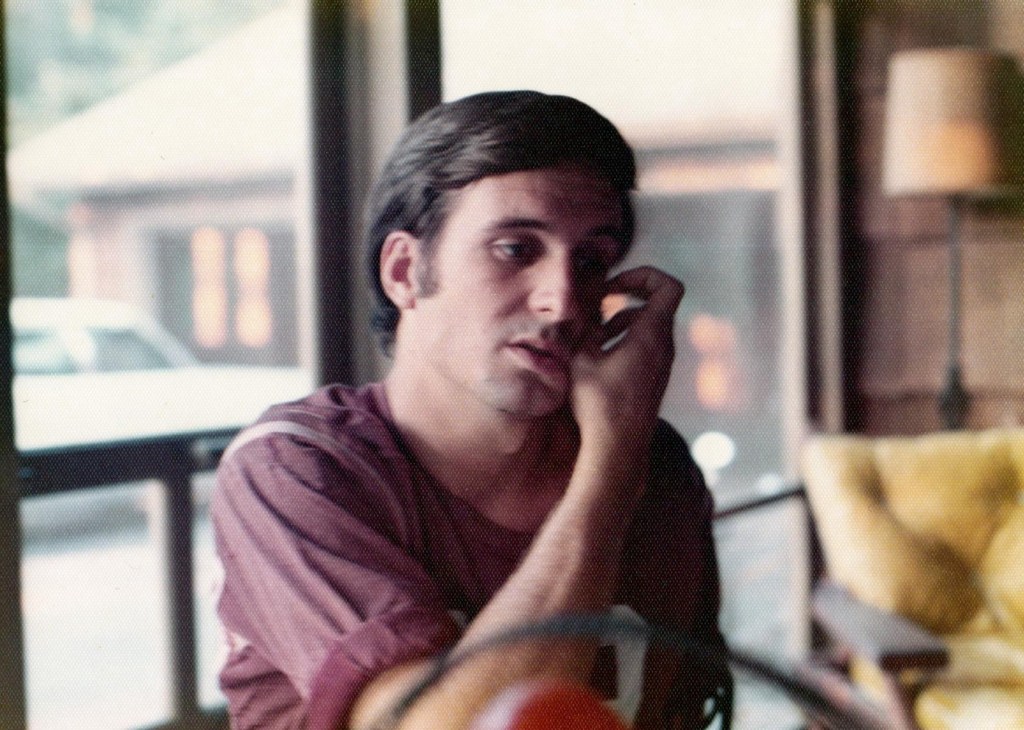 Here are two newly found photos of my mom and dad, from Jeff Tease. Jeff’s dad gave my dad his first job as a lawyer. This photo is in Milford, DE on the Tease family’s porch in Lakelawn. Dad was 25 and Mom was 22. They were married that same year in June. Dad is wearing his favorite T-shirt: Swarthmore colors with his favorite number 12. Dad was a quarterback in high school and college and always wore number 12. He was even sworn in as a judge on December 12th. -Ethan (Justice Holland’s son)