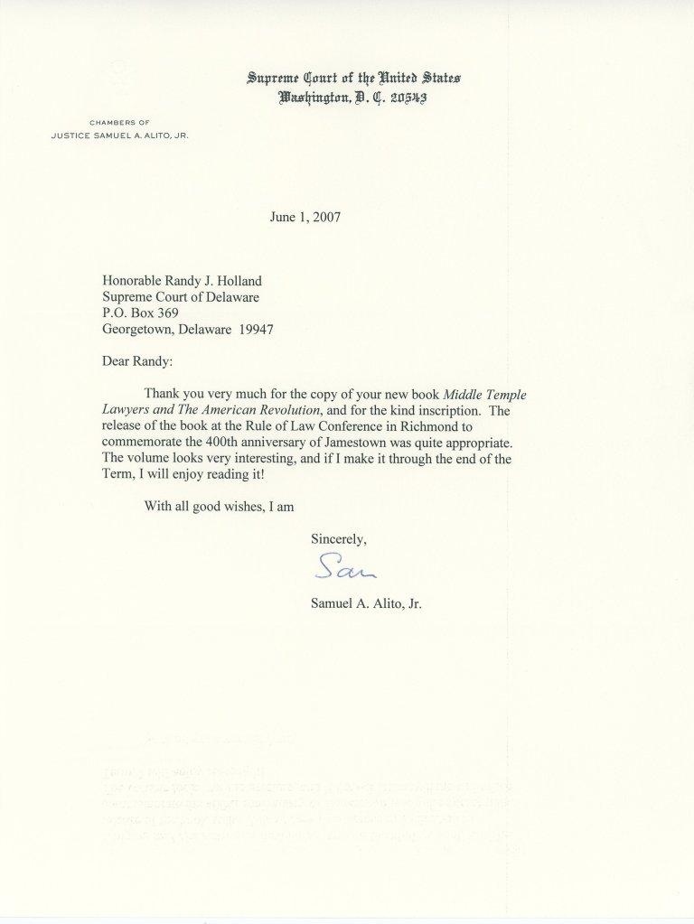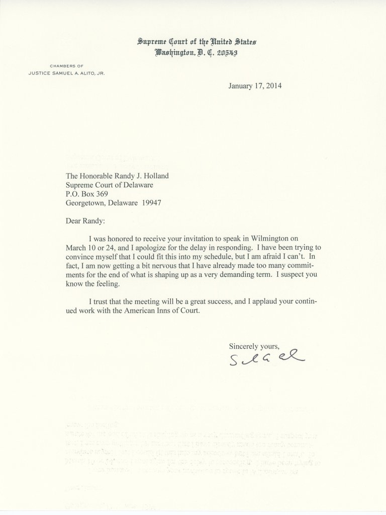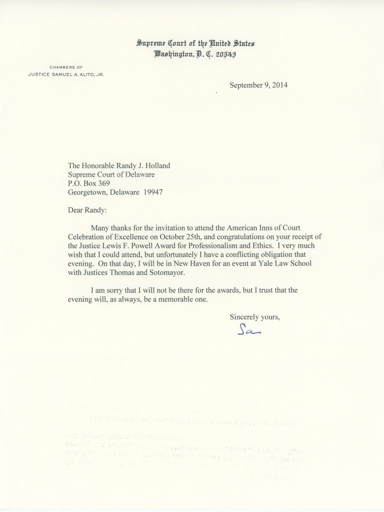 SamCategories: Samuel AlitoTags: 2014, delaware, justicealito, law, lawyer, Letters, randyholland, samuelalito, scotus, september, supremecourt -