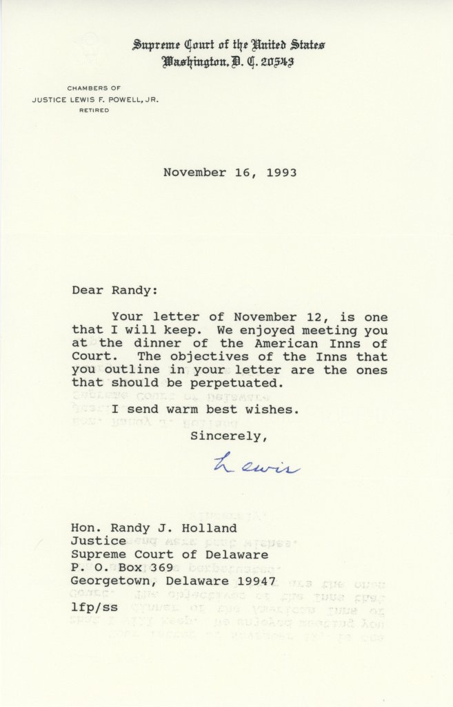 Tags: 1993, delaware, innsofcourt, judge, judicial, judiciary, justicepowell, law, lawyer, legal, Letters, lewispowell, note, november, randyholland, randyjolland, scotus, supremecourt -