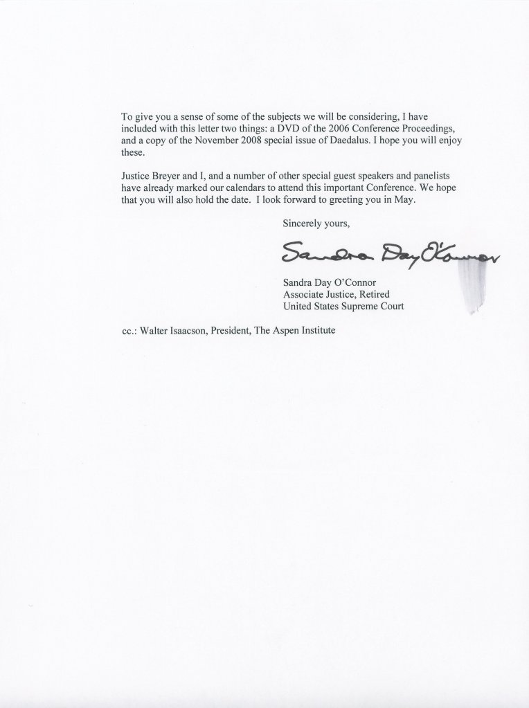 cc.: Walter Isaacson, President, The Aspen InstituteCategories: Sandra Day Oconnor -